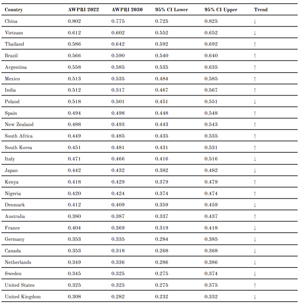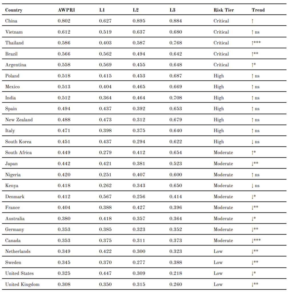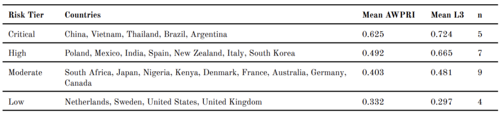 Table 2. AWPRI Scores and Layer Decomposition by Country, 2022
