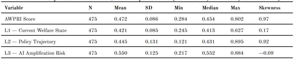 Table 1. Summary Statistics: AWPRI and Layer Scores (Full Panel, N = 475, 2004–2022)